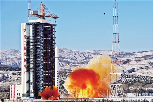 1月9日11时24分,我国在太原卫星发射中心用长征二号丁运载火箭,将高景一号03、04星发射升空,卫星顺利进入预定轨道,中国航天2018年首次发射任务取得圆满成功。新华社记者 曹 阳摄